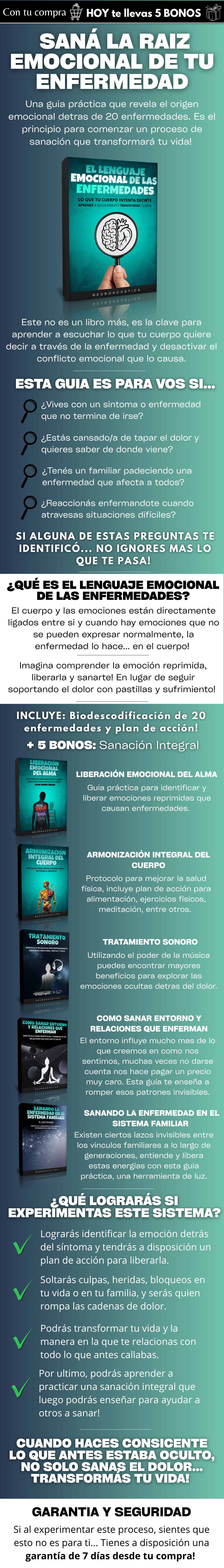 Este libro revela la raíz emocional de 20 de las enfermedades mas "comunes" en todo el mundo. Conocer el origen de tu dolor es el primer paso hacia un proceso de sanación integral. Además con tu compra, te llevas 5 bonos complementarios de regalo, para que el proceso sea aun mas completo! Es una experiencia para aquellas personas que desean dejar de soportar o tapar el dolor y afrontarlo para transformar sus vidas!